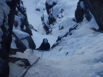A mi-parcours, un joli passage en goulotte, dos contre le